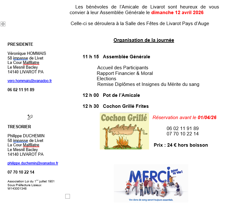 Assemblée générale de l’Amicale des donneurs de sang